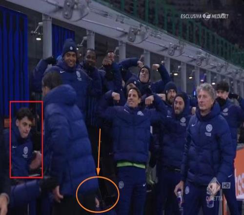 今天说点昨天文章没有来得及提及的几个小细节。 1、所有人都爱皮奥,但为什么...... 这是一位意大利的国米球迷发在一个平台上发出的声音,引发了不少人的讨论。 事情是这样的,如下图中黄色圆圈标记出的位置;在皮奥-埃斯波西托被替换下场时,直播镜头捕捉到了国米替补席这样的一个有趣的一幕,大家都站起来模仿皮奥庆祝进球的动作,以表达对他的鼓励、喜爱亦或者是调侃。但这里面唯独少了一个人,谁呢?没错,狗哥特意为此会看了一遍比赛录像,一帧一帧的看,发现这个位置坐着的人,正是劳塔罗。