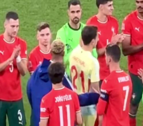 这40岁C罗赛后主动伸手和亚马尔握手,后者将脸侧向一旁