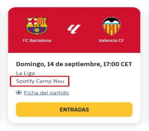 巴萨新赛季首轮主场比赛门票已开售,显示比赛场地为诺坎普球场