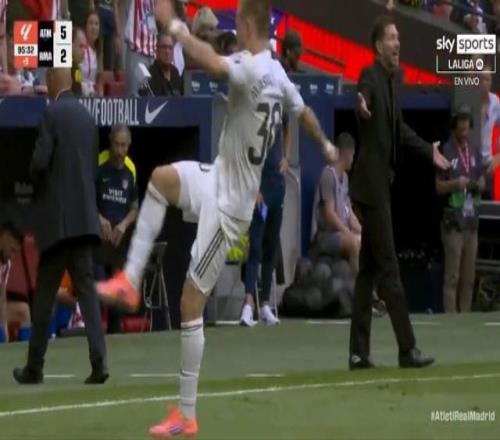 争议!皇马18岁小将情绪失控:拔脚怒射马竞球迷看台
