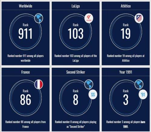 格列兹曼跌至1200万欧,在同龄球员中位列第三