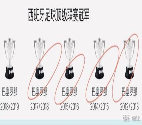 2013、2015、2016以及2018年,这四年巴萨包揽了西甲冠军,而在此期间梅西作为俱乐部的头牌球星则总共拿到了5个赛季最佳球员和2个金球奖(2012和2015年)。关键的还有在2015年巴萨还获得了欧冠冠军,这也是梅西所获得的最后一个欧冠奖杯,那一年他也拿到了个人的第5座金球奖,因此对于阿根廷球王而言影响不大。