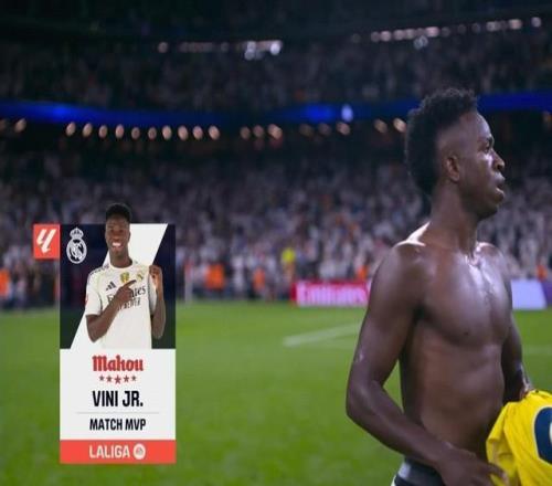 梅开二度,维尼修斯当选皇马vs比利亚雷亚尔全场最佳