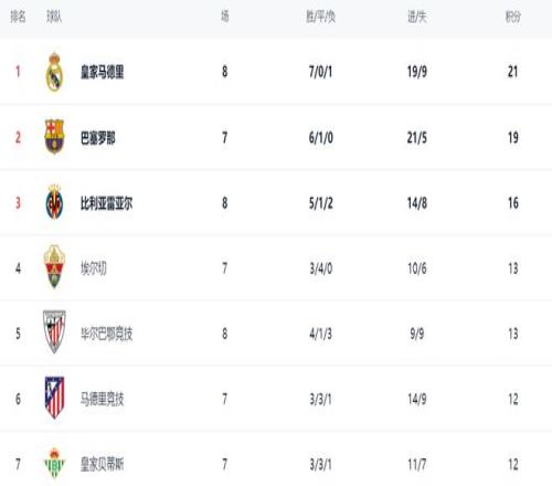 西甲第8轮进行了多场比赛。赫罗纳在主场险胜瓦伦西亚。这场比赛瓦纳特在第18分钟就帮助赫罗纳取得领先。直到下半场,瓦伦西亚才扳平比分,进球的是迭戈-洛佩斯。第63分钟,阿尔瑙-马丁内斯站了出来,他的进球让赫罗纳再次领先。比赛最后阶段,伊万-马丁和弗兰塞斯接连吃到红牌。不过,赫罗纳还是有惊无险拿下比赛,比分是2-1!这是赫罗纳本赛季首胜,等得太久了。 毕尔巴鄂竞技在主场完成绝杀好戏,以2-1击败了马略卡。比赛刚开始10分钟,毕尔巴鄂竞技就依靠点球机会取得领先,进球的是伊尼亚基-威廉斯。直到第78分钟,马略卡才扳平比分。穆萨-科斯塔打进一粒神仙进球,让门将措手不及。第83分钟,雷戈站了出来,他在禁区内推射,完成绝杀!此后桑切斯犯规被罚下。最终毕尔巴鄂竞技有惊无险拿下比赛,终结了各项赛事7场不胜。 皇马则在主场击败了实力不俗的比利亚雷亚尔。这场比赛维尼修斯踢出了顶级水准,他先是帮助皇马取得领先,虽然进球有运气成分,但毕竟把球打进了。随后他自己制造点球后亲自罚进梅开二度。虽然米卡塔泽为比利亚雷亚尔扳回一球。但是,之后姆巴佩的进球终结了比赛悬念。姆巴佩传射建功。皇马3-1击败比利亚雷亚尔,拿到了至关重要的3分。皇马8场联赛赢了7场。 在积分榜上,皇马暂时登上了榜首位置。皇马拿到21个积分。而巴萨掉到第2名,只拿到19分。不过,巴萨比皇马少踢1场。比利亚雷亚尔输球之后,依然是16分,排名第3。埃尔切和毕尔巴鄂竞技都是13分,排名第4和第5。马竞3胜3平1负,拿到12分,排名第6。皇家贝蒂斯和西班牙人也是12分,排名第7和第8。 |