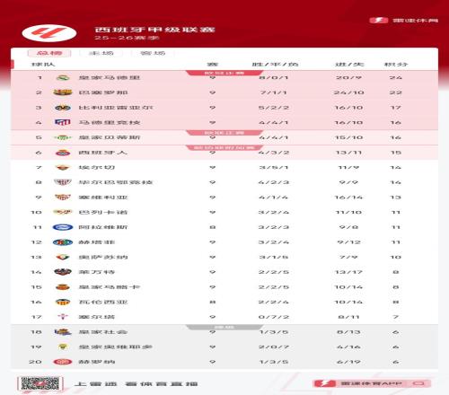 雷速体育10月20日讯 本轮西甲皇马1-0击败九人赫塔菲,巴萨绝杀赫罗纳、马竞1-0奥萨苏纳。 积分榜方面,皇马前9轮8胜1负,继续以2分优势领跑,巴萨22分紧随其后。比利亚雷亚尔17分排在第三,马竞、贝蒂斯分列第四、第五。 下轮皇马就将坐镇主场对阵巴萨,迎来国家德比焦点大战,这也是西甲榜首大战。 |