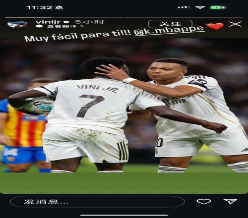失点后,维尼修斯晒与姆巴佩拥抱照片:对你来说很容易