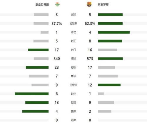 虽然主场作战的皇家贝蒂斯面对大比分落后的处境并没有放弃,在第85分钟和第90分钟分别由略伦特和库乔取得进球,缩小了分差,却无力改变3-5输球的结局。