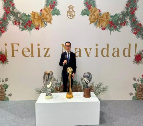 体坛周报驻西班牙特约记者 吴昊宇 又是一年圣诞节前夕,本周一皇马按照惯例在训练基地召开招待会,宴请来自世界各地常年现场报道自家比赛的记者们,笔者也有幸受邀参加了圣诞媒体招待会。比起去年招待会上一整排包括欧冠、西甲在内的重量级奖杯,今年会上的奖杯分量实在是拿不出手,甚至还要把上赛季夺得的欧超杯和洲际杯冠军拿来充数。招待会上皇马主席弗洛伦蒂诺、荣誉主席皮里和公关部主任布特拉格诺等人均亲自接待各方嘉宾,弗洛伦蒂诺发表了圣诞贺词,也是幸亏前一天晚上皇马客场惊险赢下阿拉维斯,才让受邀的老记们暂时放下阿隆索帅位安稳与否的话题,乐乐呵呵地过个年。