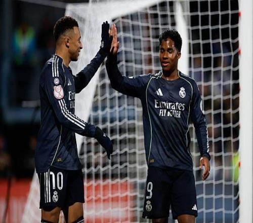 皇马媒体酒会在觥筹交错间热热闹闹开完了,但今年的比赛还没完。暂时稳住帅位的阿隆索先要带队出战国王杯首战,对手是目前排在第三级联赛西协甲A组第19位的塔拉韦拉,全队总身价不足300万欧元,不及皇马阵中任意一人。即使纸面实力呈碾压态势,皇马在国王杯赛场阴沟翻船的历史却不能忽视,远有佩莱格里尼率队0比4惨败马德里市郊的阿尔科孔,近有2021年齐达内的皇马被阿尔科亚诺掀翻,一度让齐祖帅位出现危机。 有如此黑历史在前,帅位还不算稳的阿隆索不敢怠慢,本场他排出的首发阵容可称为半主力,姆巴佩、居莱尔、怀森和卡雷拉斯几位铁打主力先发,其余也都是一线队常规替补,防线上由于劳尔·阿森西奥生病缺席,B队小将希门尼斯首发出战右后卫,维尼修斯和罗德里戈则在替补席待命。国王杯第一轮就排出这样的阵容,对于一向不太看重这项赛事的皇马并不多见。姆巴佩的首发更是让人意外,对于塔拉韦拉本地球迷而言,能在座无虚席的自家主场看到姆巴佩等主力登场,绝对是意外之喜。 此役阿隆索安排恩德里克和贡萨洛搭在锋线搭档姆总,作为正印中锋的贡萨洛支点作用明显,难得首发的恩德里克也表现活跃,多次利用个人能力突破对手防线并串联起中前场,也让姆巴佩有了充分的发挥空间,法国人打出弧线球射门,可惜被对方门将化解。皇马虽然开局遭遇一些麻烦,但整个上半场基本控制着局势,只是取得领先的方式略显争议,塔拉韦拉球员马科斯·莫雷诺禁区内手臂触球被判罚点球,但慢镜回放显示他似乎先用头顶到球,由于现场没有VAR,判罚无可更改,姆巴佩主罚命中。下半场决定比赛的还是姆巴佩,他的突破传球造成对手乌龙球,并在塔拉韦拉扳回一球不久后打出标志性远射破门。