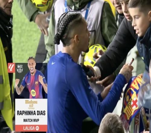 首开记录,拉菲尼亚当选黄潜vs巴萨全场最佳球员
