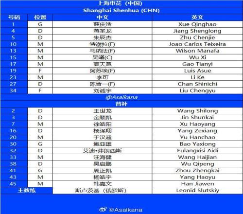 北京时间10月1日20:15,亚冠精英联赛第二轮,上海申花坐镇主场迎战蔚山HD,本场比赛主裁判是日本裁判荒木友辅,VAR是日本裁判饭田淳平,赛前双方公布首发: |