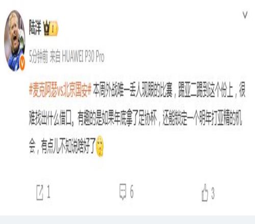 媒体人怒批国安完败:本周唯一外战输球球队,根本就不想赢球