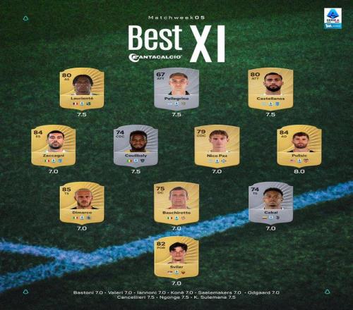 意甲官方第5轮最佳阵:尼科帕斯、普利西奇入选
