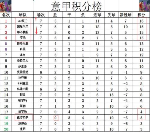意甲最新积分战报AC米兰逆转绝杀超国米登顶尤文4轮不胜跌到第7