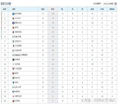 意甲最新积分榜:那不勒斯力克国米登顶,亚特兰大保住不败金身!