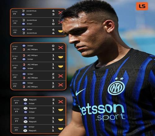 据统计,在本场比赛失利之后,国米在米兰德比中已经遭遇了连续6场不胜以及主场的3连败,他们上一次赢得米兰德比还要追溯到2024年4月23日。