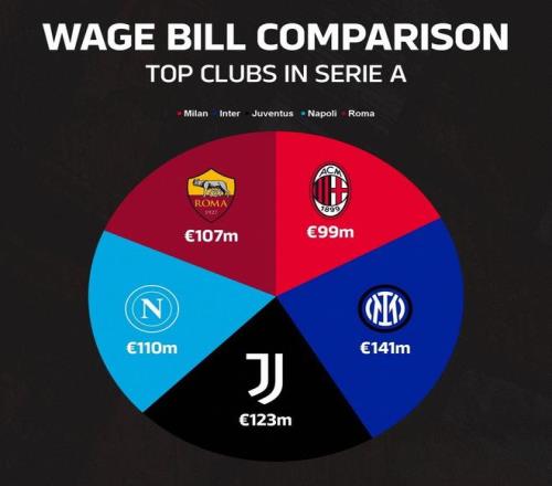 薪资开销方面,米兰本就重视控制成本,由于本赛季没有欧战任务,管理层又对阵容进行了大幅瘦身,一线队除了门将位置外只有19名外场球员,勉强可以应对联赛和国内杯赛,最终他们的工资成本只有9900万欧元,排名意甲第5位。