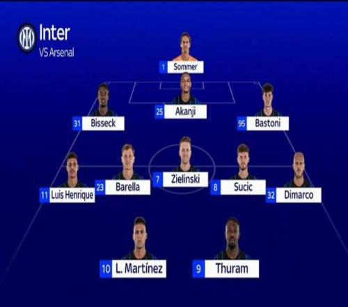 反观阿森纳是目前欧冠前6轮唯一全胜的球队,以18分遥遥领先排在第一名,而他们最后一轮的对手还是仅积1分的弱旅阿拉木图凯拉特,主场赢下他们几乎没有任何难度,这让他们基本提前锁定了前2名的位置,所以即便这场输给国米对他们也完全没有任何影响。不过,在阿尔特塔看来并非如此,上赛季欧冠联赛阶段,同样是来梅阿查挑战国米,阿森纳在全场占尽优势的情况下却0:1输掉了比赛,这或许成了他心里的一根刺。所以,即便这是他们10天内连续第4场客场比赛,球队疲劳度拉满,但阿尔特塔依然在赛前发布会上喊出了“我只知道明天比赛我们是抱着取胜的心态来的,我们去年未能拿下对手,这次我们要证明现在已经变得更好,只要我们赢下对手就能提前锁定前八,为此我们要全力以赴”的豪言壮语! 按照天空体育的预测,双方在本场比赛都会派出大部分主力出战。国米这边巴斯托尼和小图拉姆轮休一场后回归首发,苏契奇则顶替姆希塔良出任左中场,也算是小幅度轮换了。米体的预测稍有不同,阿切尔比轮换比塞克打拖后中卫,阿坎吉出现在右中卫位置上,其他位置都一样。看看齐沃到底会选择全主力出击,还是略有保守进行局部小轮换。