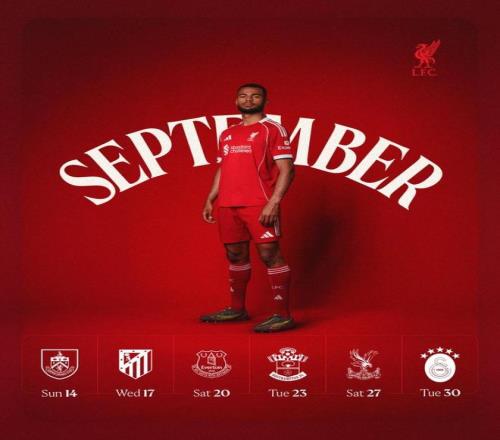 利物浦官方晒9月赛程:18日欧冠主场vs马竞20日默西塞德德比