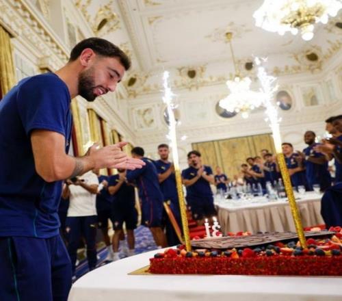直播吧9月9日讯 9月8日是葡萄牙中场布鲁诺-费尔南德斯的生日,由于适逢国际比赛日,曼联队长和国家队队友度过了一个难忘的生日。