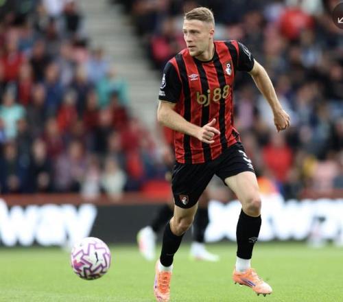 特吕费尔被认为非常适合伊劳拉的战术体系,而这套打法的核心就是强度。“当你展现出比对手更高的强度时,我认为这是赢球的最佳方式,”特吕费尔说道。“当然你还需要做其他的事情,但如果一开始你就比对手赢下更多的对抗,你获胜的几率就会大得多。我们跑动很多,因为每个人都想进攻,但同时每个人也都想防守。 “对我们来说,防守不仅仅是后卫的任务,进攻也不仅仅是前锋的任务。这是全队一起完成的。我们喜欢在场上一起做所有的事情——而这就是赢球的最佳方式。” 上赛季在雷恩,特吕费尔就是球队队长;而在伯恩茅斯,他也以身作则——训练中就像比赛一样投入,被认为是教练最理想的球员。他在同龄人中也经验极为丰富,职业生涯已超过200场比赛,并且踢过欧冠、欧联和欧会杯。在2022-23赛季,他所在的雷恩队曾双杀拥有姆巴佩和梅西的巴黎圣日耳曼。而英超,他说,是他职业生涯下一步最合乎逻辑的选择。 特吕费尔也向一些朋友和前队友打听过情况,其中就包括多库。“我觉得他是我见过的一对一能力最强的球员之一。姆巴佩同样也很难对付,而和这种类型的球员交手,你能学到很多东西,因为他们能瞬间改变比赛走势。”特吕费尔说道。“现在在曼城,多库更多踢在左边,但在雷恩时他经常踢右路,所以我在训练中不得不经常和他对位。” 对我来说,这有助于提升自己。他告诉我,这里的比赛强度和法甲完全不同。在法国,可能会更偏战术一些。但在这里,每一场比赛你都得不停地跑,没有休息。”