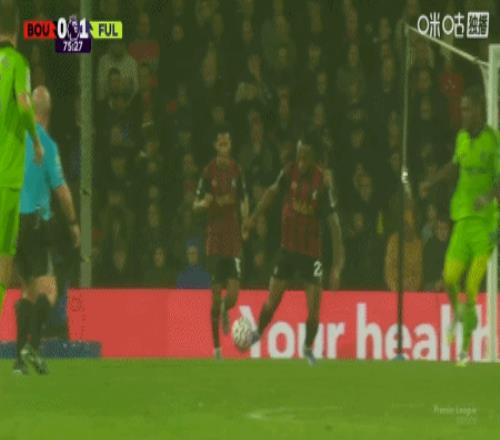 上咪咕独家看英超 第78分钟,塞门约小角度穿门将小门扳平比分,伯恩茅斯1-1富勒姆