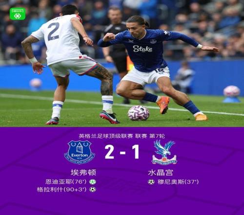 埃弗顿21逆转送水晶宫赛季首败,格拉利什补时绝杀