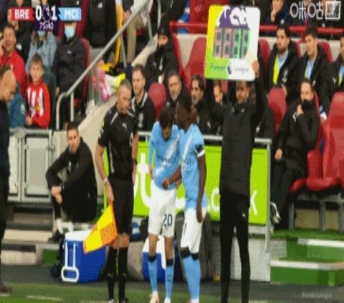 第76分钟,曼城换人调整,多库、B席替补登场