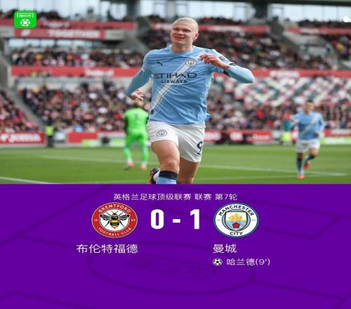 剑南春曼城10客胜布伦特福德,哈兰德制胜,罗德里伤退