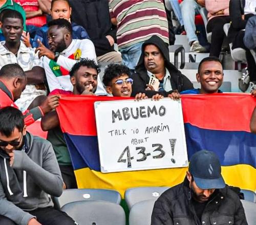 非洲球迷在看台打标语:姆伯莫,跟阿莫林聊聊433吧