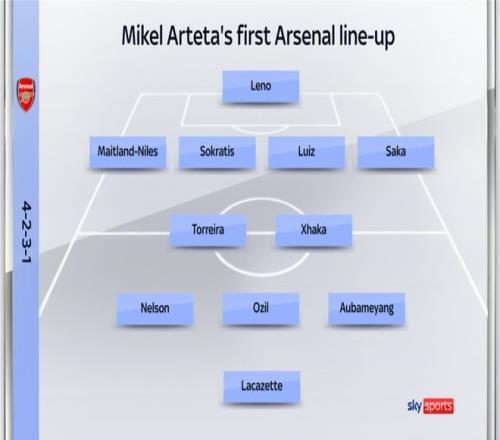 球员对比 在阿尔特塔执教的首场比赛里出场的11名球员里,只有萨卡继续留在队内,当时他出任左后卫。