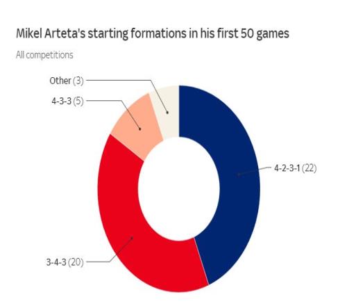 在阿尔特塔执教之后,阿森纳的阵容变化幅度相对更慢,在其执教的50场比赛里,加布里埃尔、厄德高和托马斯进入首发阵容。