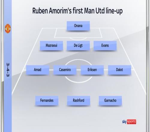 在阿莫林执教之后,曼联的阵容也发生了变化,在阿莫林执教的首场比赛里出场的11名球员里,5人已经离队,包括奥纳纳、埃文斯、埃里克森、加纳乔和拉什福德。