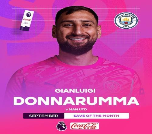 官方:多纳鲁马曼市德比飞身单手扑救当选英超9月最佳扑救