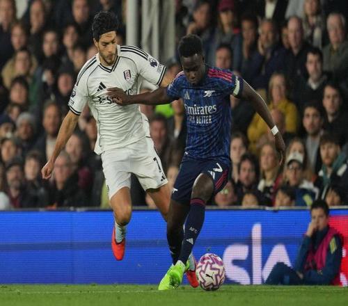 阿森纳前7轮5胜1平1负积16分,暂列积分榜次席。富勒姆2胜2平3负,以8分排在第14位,领先降级区3分。本场比赛阿森纳派出哲凯赖什、萨卡和特罗萨德的锋线组合,赖斯、埃泽和苏比门迪坐镇中场,萨利巴和加布里埃尔统领防线。 第10分钟,哈里-威尔逊禁区前沿送出直传,希门尼斯插上小角度打门,拉亚飞身将球扑出,阿森纳逃过一劫。 第16分钟,赖斯长传转移,特罗萨德不停球外脚背传中,卡拉菲奥里劲射直挂死角。