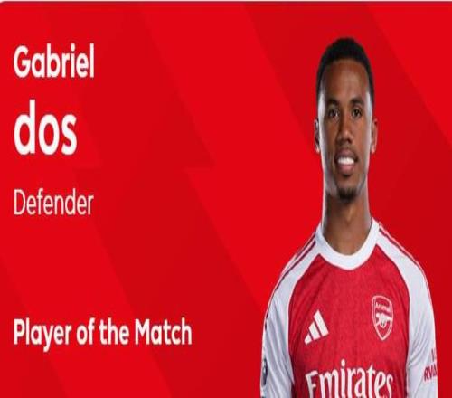 献制胜助攻,加布里埃尔当选富勒姆vs阿森纳球迷票选最佳球员