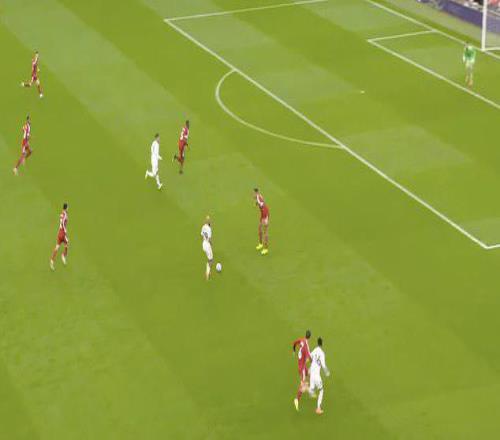 曼联在赢得第二落点方面表现出色,并迅速将其转化为进攻机会。 迪亚洛吸引了凯尔凯兹的防守注意力,但他将球轻轻传给已经拉到边路的姆伯莫,后者迫使范戴克移动到比己方禁区还宽的位置。库尼亚随后插上进入空当,迫使门将马马尔达什维利做出扑救。 第30分钟,随着姆伯莫向前推进,迪亚洛拉开边路。凯尔凯兹不得不跟随迪亚洛的跑动以防姆伯莫传球给他,这使得范戴克陷入一对一的不利局面。