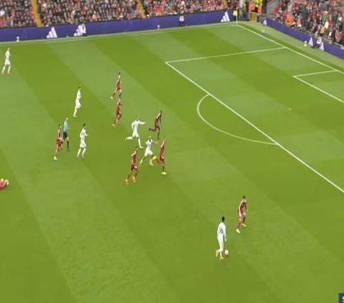 曼联巧妙利用阿马德-迪亚洛等人,将利物浦防线拖得七零八落。 第26分钟,拉门斯大脚长传,范戴克赢得第一点争顶,但球落到了德利赫特脚下,他轻巧垫传给迪亚洛。