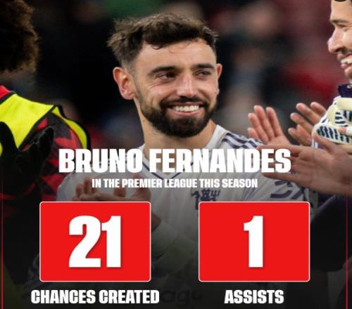 英媒:B费本季英超创造最多机会,但仅为马奎尔送出一次助攻
