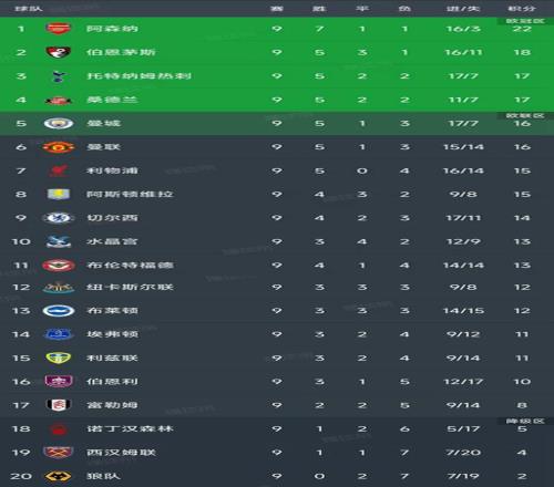 英超第9轮结束了所有比赛,最新积分榜如下!