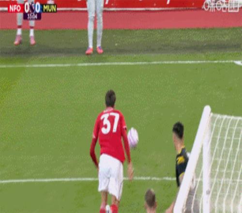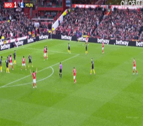 布鲁诺·费尔南德斯主罚,卡塞米罗把握住这次本应不存在的定位球,跃起头球冲顶入网,曼联1-0诺丁汉森林。