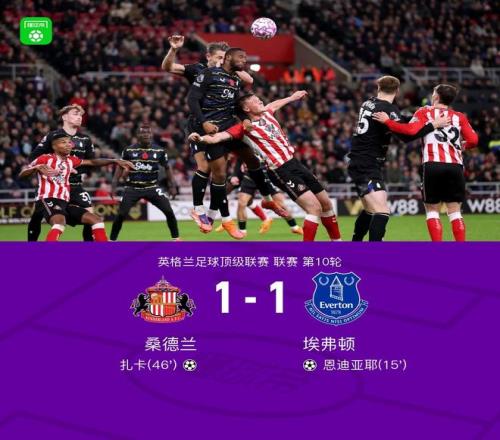 桑德兰11埃弗顿,恩迪亚耶破门,扎卡扳平