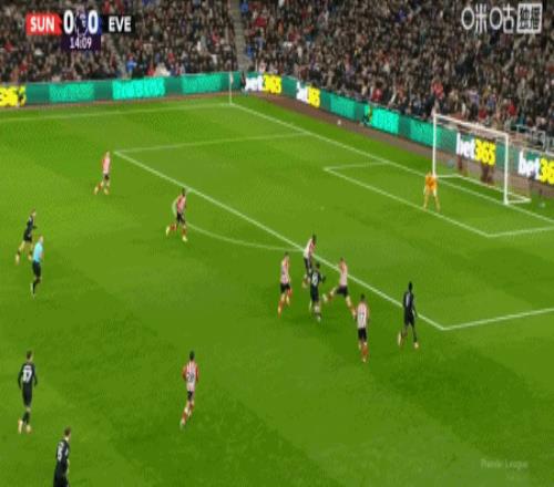 上咪咕独家看英超 第15分钟,恩迪亚耶过掉三人晃开角度起脚破门,埃弗顿1-0桑德兰