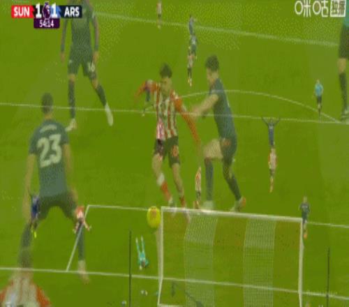 第15分钟,加布里埃尔造定位球,赖斯操刀兜射被扑