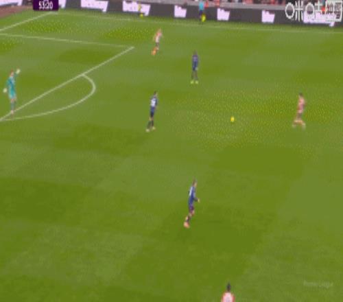 第20分钟,桑德兰连续配合,伯特兰-特拉奥雷突入禁区自己摔倒