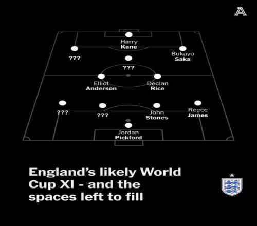 扬·迪奥曼德是本赛季德甲冉冉升起的新星,这位边路球员在最近三场比赛中打进三球并送出三次助攻,联赛中没有其他球员像他那样频繁地进行盘带,也没有球员有他那样高成功率。此外在速度方面,只有柏林联合的奥利弗·伯克(36.01公里/小时)比他(35.98公里/小时)略快。 消息来源:体育图片报 3 - 世界杯先发定了这7人 据The Athletic报道称,英格兰队世界杯7个首发位置已确定,贝林厄姆、帕尔默、福登等球员将竞争10号位首发。