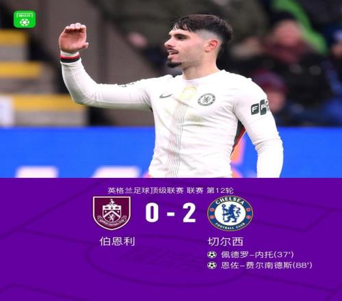 剑南春切尔西20客胜伯恩利,内托、恩佐破门,吉滕斯、吉乌送助攻