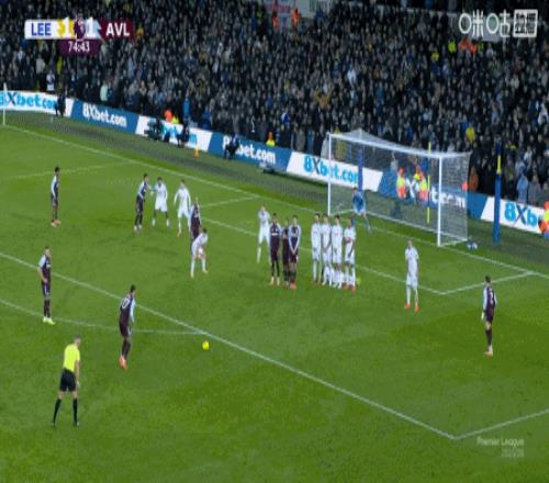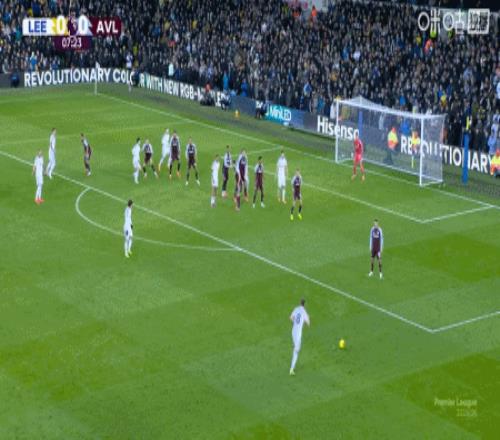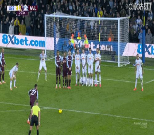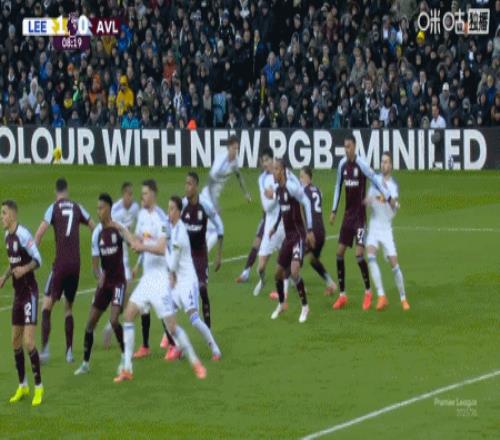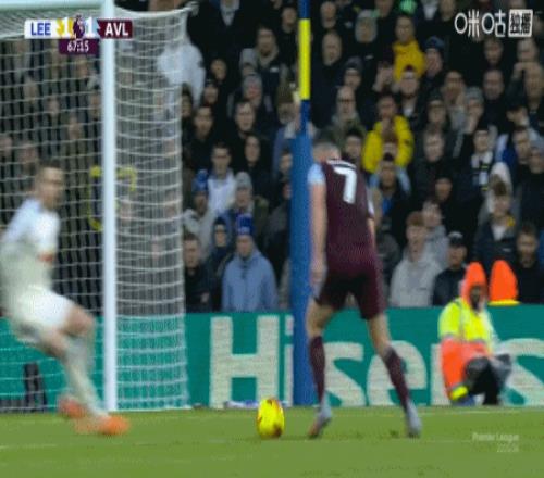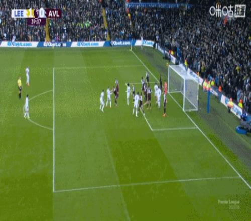上咪咕独家看英超 第75分钟,摩根-罗杰斯任意球直接破门完成双响,维拉2-1利兹联