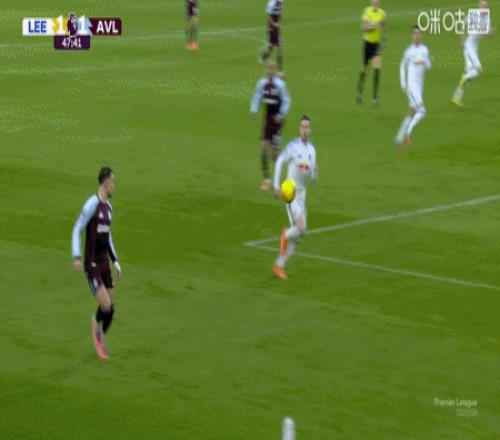 上咪咕独家看英超 第48分钟,马伦低传门前,摩根-罗杰斯捅射破门,维拉1-1利兹联