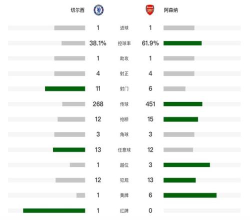 阿森纳11平十人切尔西!近17场不败+5分领跑英超凯塞多蹬踏染红